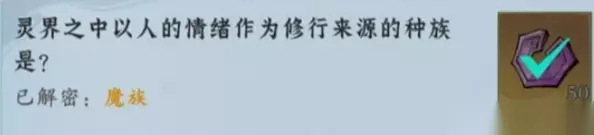 问剑长生神念禁制灵界见闻其一答案分享 1、灵界之中以人的情绪作为修行来源的种族是? 答案:魔族