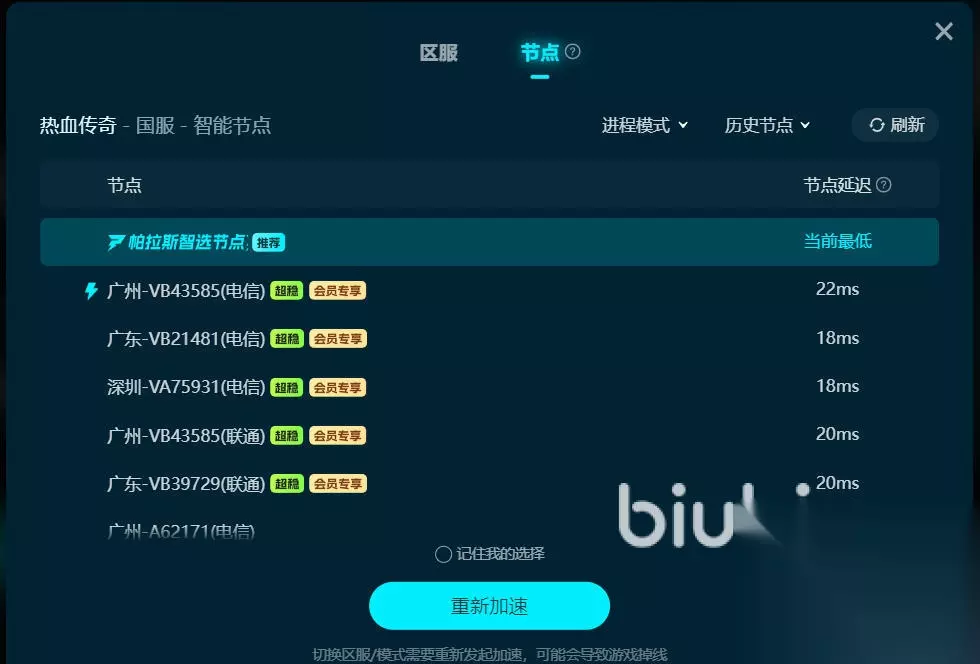 除了专业级别的加速能力之外。biubiu加速器对于传奇玩家也会拥有更好的适应性,不仅会覆盖目前主流的传奇公益服。就算是经典1.76版本,或者是现在最新的合集版本,全部都能够找到一个对应的线路。在操作上也可以做到极简,只需要一键加速,并不需要去手动的切换节点,后台还会随时监测网络的状态,一旦遇到网络波动就会自动的切换一条线路,并不会耽误玩家抢Boss。对于多开玩传奇的玩家而言,那加速器的多线程加速技术,也可以有效保证家属不会受到干扰。