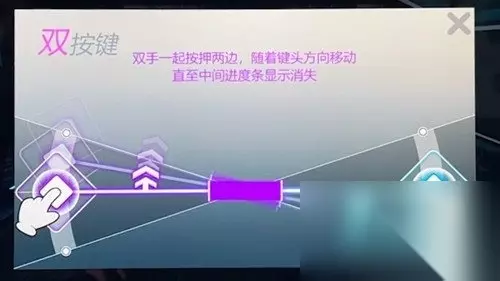 五、双按键玩法介绍 两手一起轻按两侧,随着箭头方向挪动,直到中间时间轴表明消退