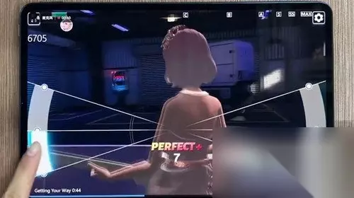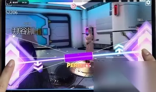 在相应区域部位点击屏幕可打中NOTE,击中的部位越靠近判定线,获得的分数越高