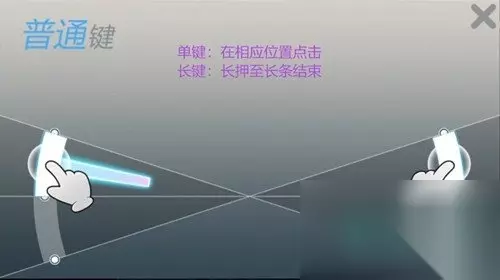 《劲乐幻想》吉他模式玩法攻略: 一、普通键玩法介绍 单键:在相应位置点击 长键:长押至条形完毕