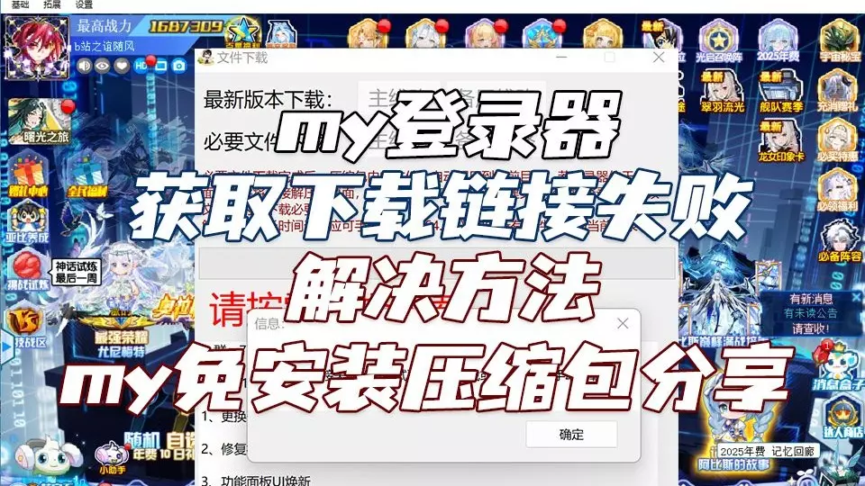 最近经常更新my时候会出现获取下载链接失败,这个视频给大家解决,还有就是提供my的免安装压缩包,简单无脑跟着视频流程即可,适合新手玩家使用。 更多boss攻略会…