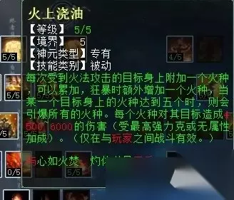 大招“心如火焚”,不仅可以秒10个单位,并且会给其加上“灼烧”状态,降低三尸回复效果,类似于“重伤”。再配合BB的多重“重伤”效果叠加,相信对手会苦不堪言。 大招“火上浇油”,是被动技,不消耗怒气,在调整推出“心如火焚”之前,这是女仙最喜欢的大招,但了有秒10,它就不香了。