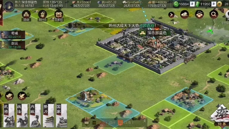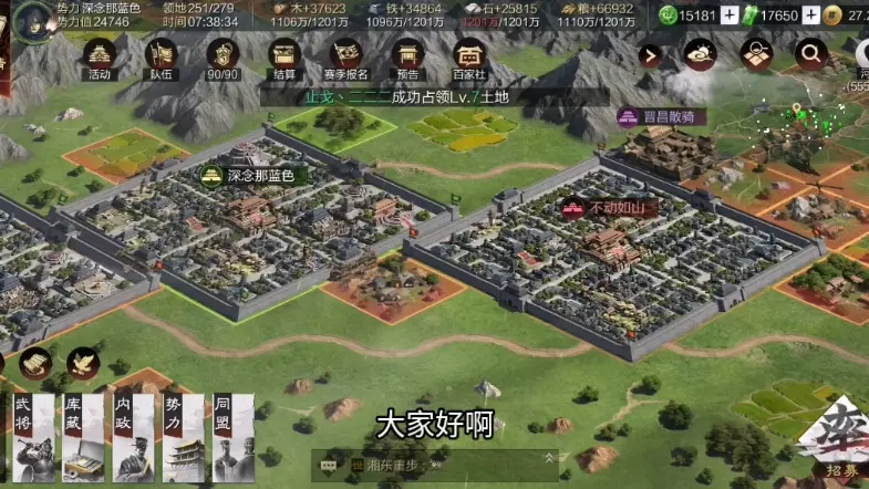 这是策略游戏《率土之滨》的新手平民奔征服攻略内容,展示了赛季末期的对战场景,包含部队出征推进、势力对抗等实战内容,为平民玩家提供冲征服的实战参考。