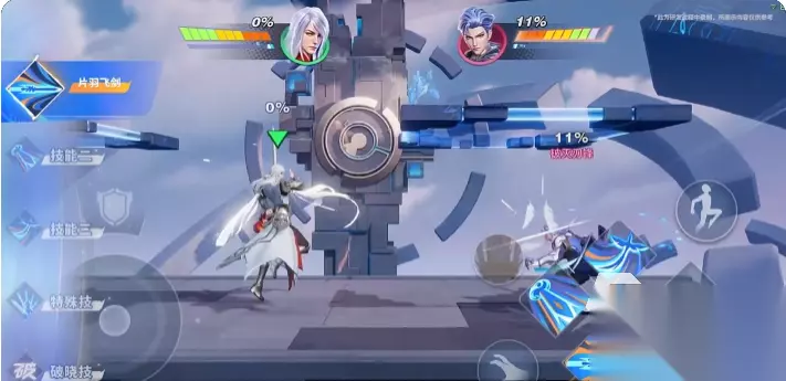 二、基础主动技能介绍 技能一是“片羽飞剑”,角色向前方发射羽剑,这个羽剑虽然造成的伤害比较低,但是飞行的距离非常的远,可以作为远程消耗的手段来使用;技能二“天鸣引剑”,角色将巨剑召唤出来攻击前方的敌人,剑尖如果命中地面的话,会留下一道剑痕,会经过短暂的延迟之后,迸发出能量并且对敌人造成伤害,被这个技能直接命中的话,敌人会进入短暂的被控制的状态,这时候他可以接近对手并且接上连招使用; 技能三“凤神入剑”,他将剑气挥出,如果剑气命中敌人的话,角色会在空中进行追击,如果击中板边的话,角色会瞬移并且挂板,因为这个技能只有命中了才会进行追击,所以这是一个低风险的一个防空技能,不用担心和其他角色一样因为三技能导致落地的惩罚,不过这也代表了角色缺乏垂直移动的手段。