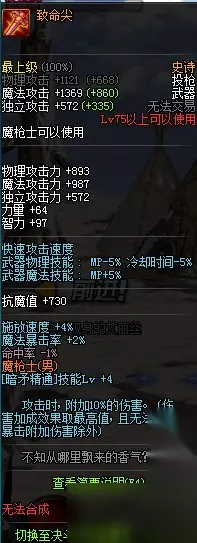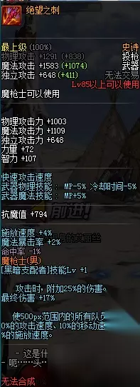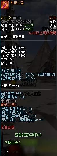 结论 如果喜欢单刷,追求只打打卢克秒秒秒,龙枪适合你 如果喜欢舒服的手感,与队友配合攻坚魔界等以后的团队本,黑枪表现算不错 见仁见智,随心选择吧。 以上就是本次给大家带来的全部内容了,希望对大家有所帮助,我们下期再见。 全新的魔枪士转职“暗枪士”即将粉墨登场,玩家们将在春节期间体验到这全新的魅力职业。那么新职业暗枪士用什么武器好呢?下面就让小编带大家一起去了解一下吧! DNF暗枪士武器一览 暗枪士BF武器 暗枪士史诗武器