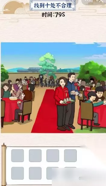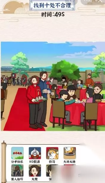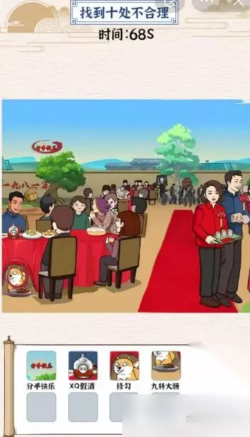 游戏细节 我们得注意礼炮、桌布、人物这些细节,才能找到所有不合理的地方。游戏里这些元素挺丰富的,但有些东西确实不太对。强哥结婚的场景本来挺喜庆,但这些东西一出现,就有点搞笑。