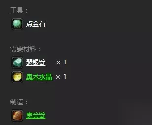 在魔兽怀旧服游戏中制作奥金锭的材料是需要1个瑟银锭、1个奥术水晶以及1个点金石后可以制作了,玩家副职业炼金术技能点需要达到275点学习配方:合成能够就能制作奥金锭了。