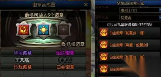2、合成。2同等白金徽章合,成必得一个白金徽章。2灿烂徽章合成,有几率合成白金徽章。