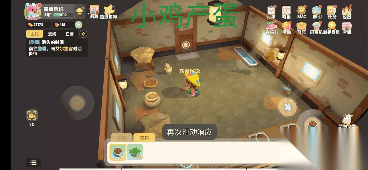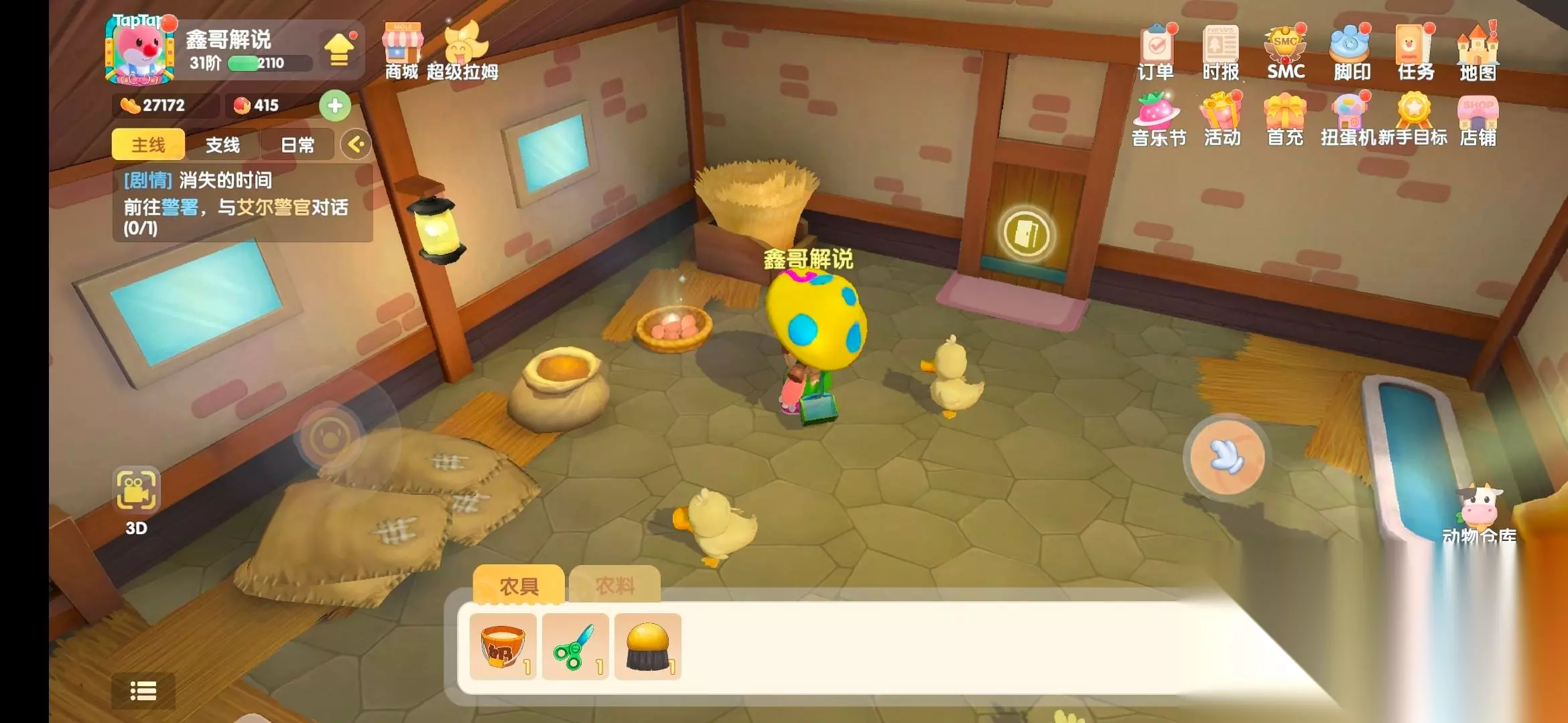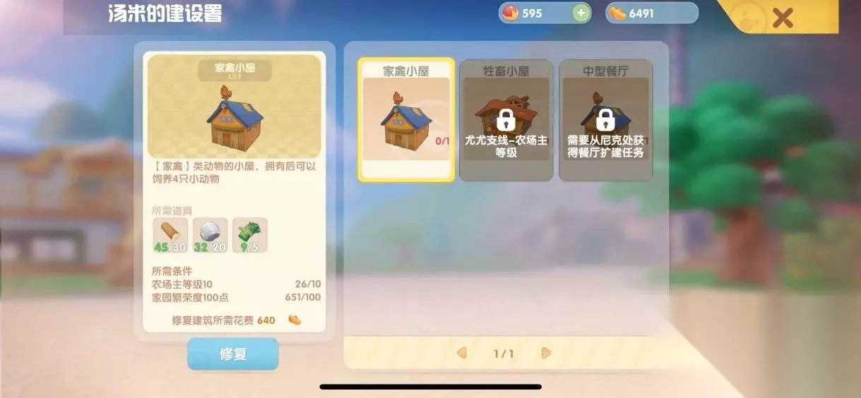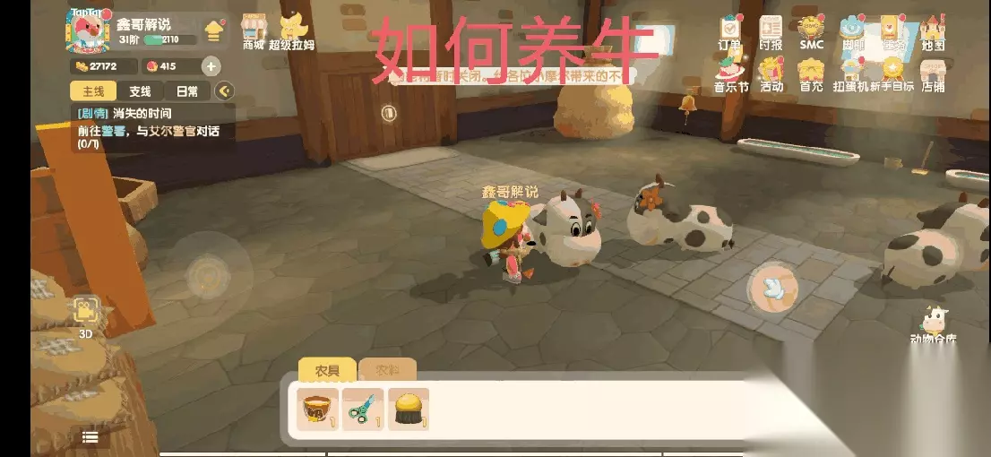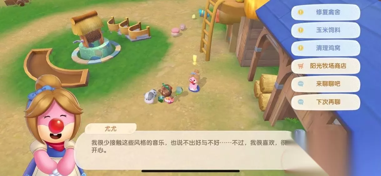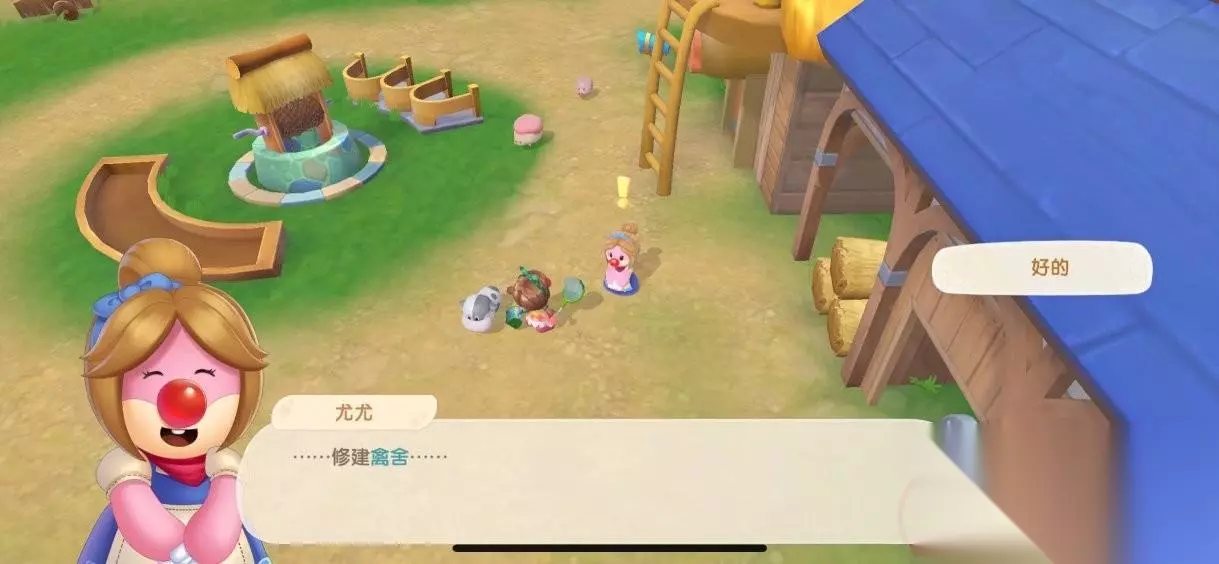 第一步:去阳光牧场找到尤尤领取修复禽舍任务