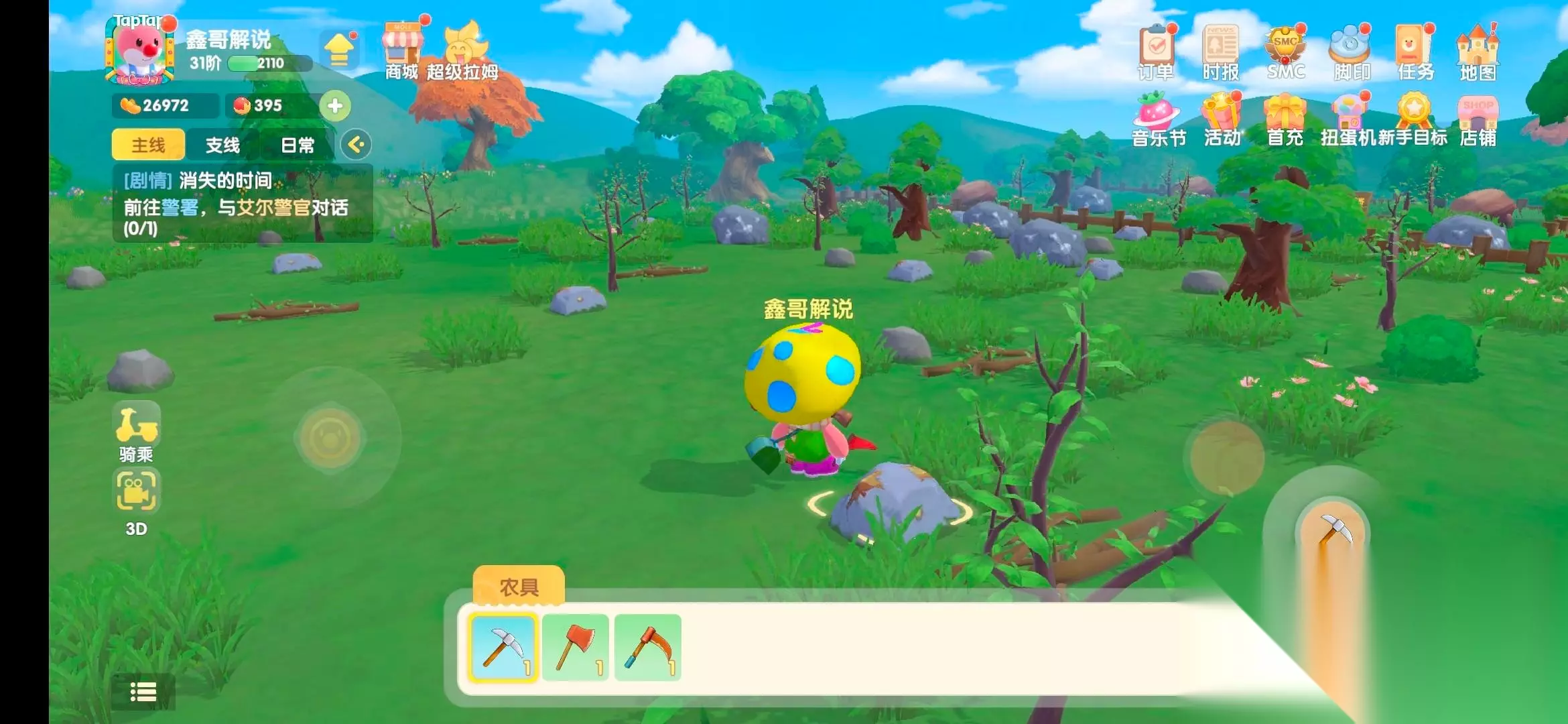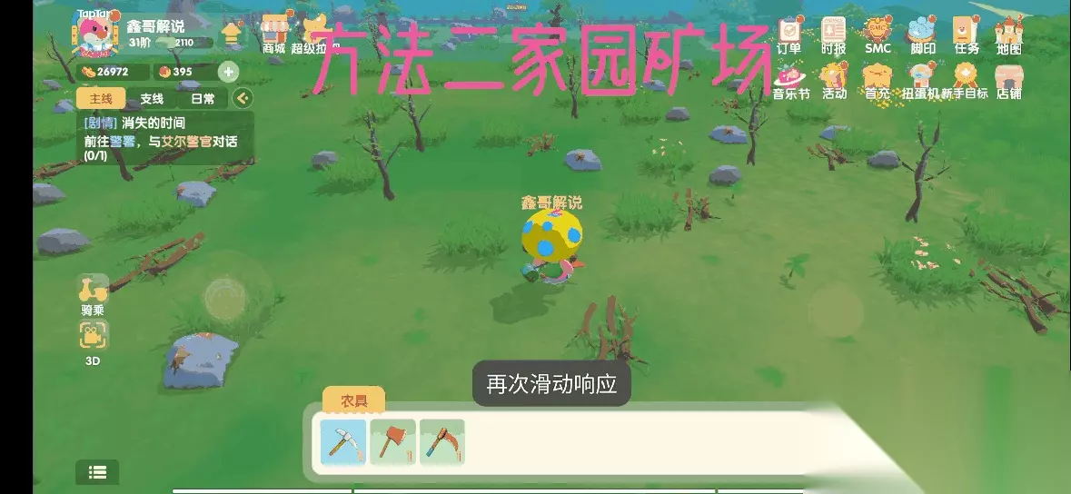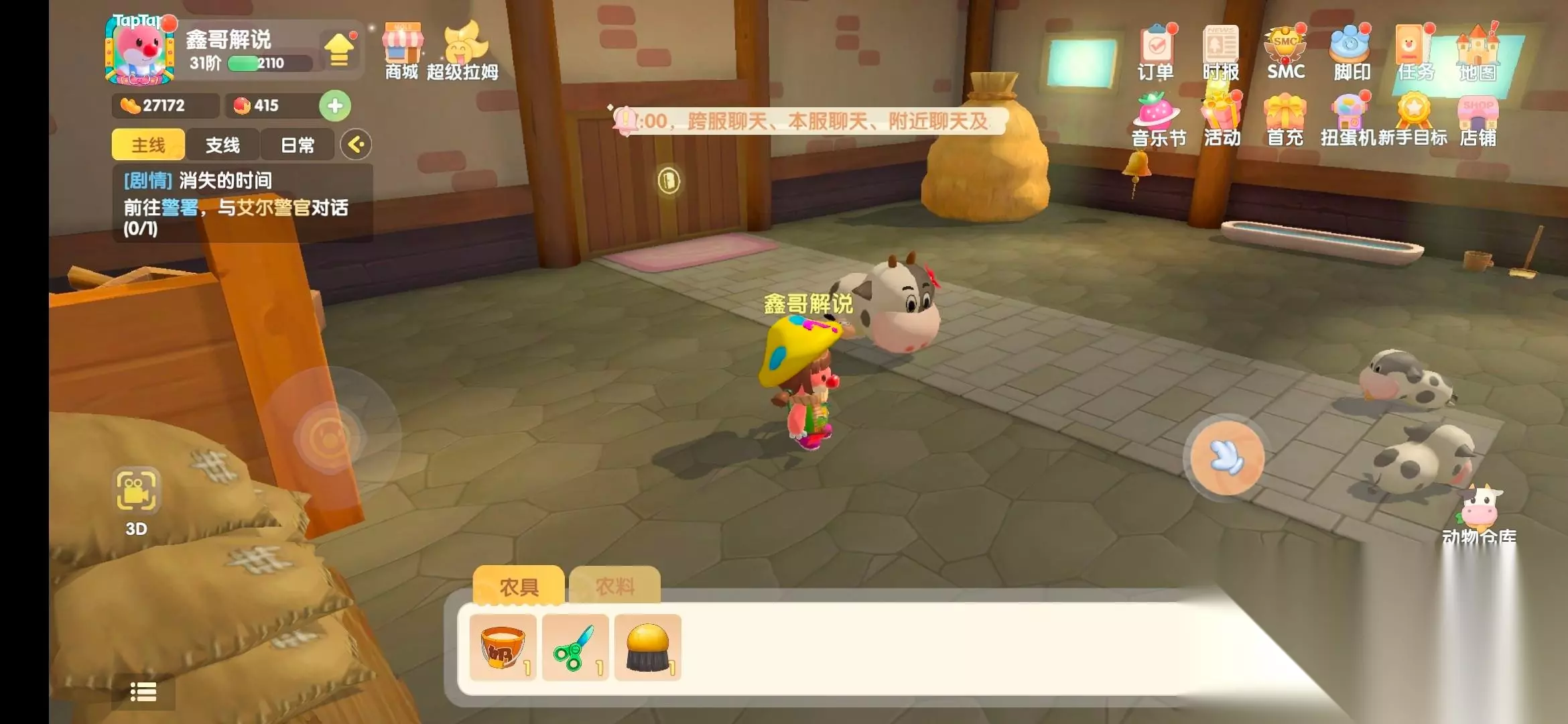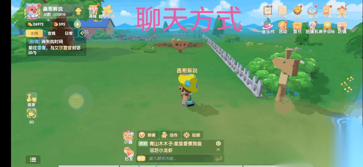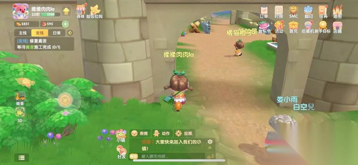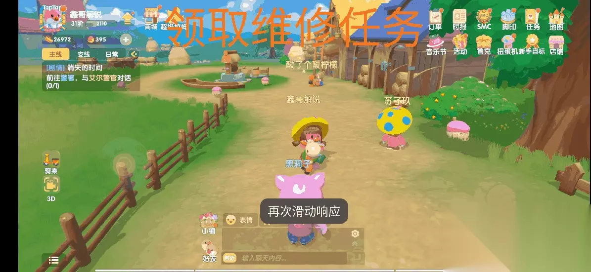 第一步:去阳光牧场找到尤尤领取修复禽舍任务