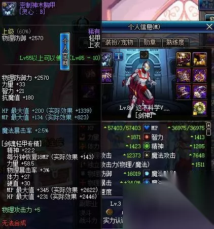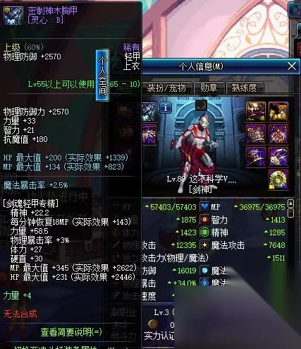 我们待会给这个上衣附魔力量宝珠,和攻击力宝珠,然后看面板