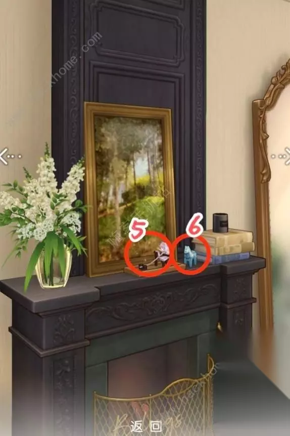 B区域(共2个) 进入B区域,来到左边的壁炉前,依次点击壁炉上两个物品。
