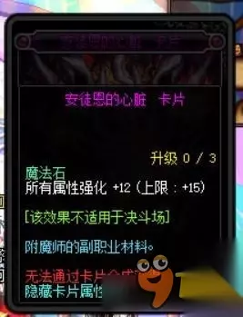 地龙之魂这种节日宝珠的价格现在基本上都在700W徘徊,这个宝珠是固伤职业的首选武器附魔宝珠,至于属性大家都知道独立+40,相当不错的属性。在不久以后春节套下架后,此宝珠的价格估计会上涨很多。 TOP3:安图恩心脏卡片