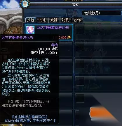 【233乐园手机游戏网】DNF体验服又更新了全新的东西,在这次体验服更新的大转移版本中,除了小伙伴关心的75-85SS以外,还有其他全新的物品。今天小编为大家带来的就是DNF大转移新增物品,远古神器装备进化书的介绍。现在我们就一起来看看吧!