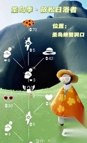 3、复刻先祖时间:在本周四中午12:00至下周一中午12:00 玩家想要兑换这个草帽的话,需要42个蜡烛才能完成兑换; 然后如果想要得到这个墨镜,则是需要30个蜡烛才能兑换; 此外还有这个橘子花纹斗篷,需要70个蜡烛才能兑换完毕;