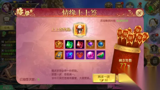登录豪礼 活动时间:6月22日00:00至6月24日23:59 活动说明:炎炎夏日,豪礼相送!活动期间,登录游戏即可领取礼包! 上上签 活动时间:6月22日00:00至23:59 活动说明:点击再求一次和再求十次,即可求签;每次求签必得一份奖励,求签一次,签数减一,求中大奖后签筒将重置,大奖更换,初始签筒签数为77签。奖品包括,灵宠“夏神祝融”、百变灵宠礼盒、精致炼化石、飞升灵丹等丰厚奖励