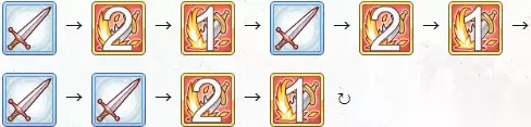 经年累月陪伴着伊莉亚的斧头。散发出红色魔力的巨刃,只需一挥便能歼灭敌人,同时吸尽飞散的鲜血并化为主人的粮食。 攻击顺序 起手 循环
