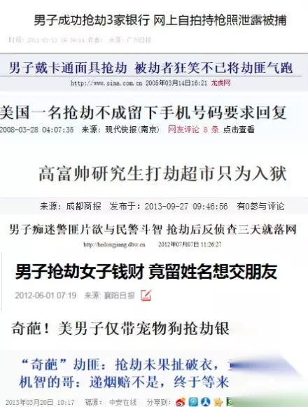 曾经,劫匪在群众眼里是“穷凶极恶”、“坏人”、“心怀不愧”、“危险人物”;但是近年来越来越多的奇葩事件告诉大家——部分劫匪,只是走错了片场的喜剧演员。