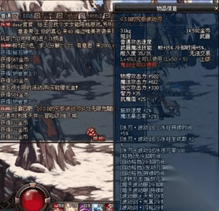 另外在地下城中还有一把武器也是非常的神秘啊,这把武器刚出现的时候就让所有玩家都懵了,这属性也太逆天了吧,竟然增加100%的物理魔法暴击几率。而且崩山击的范围增加了200%,这下小蹦直接变成了大蹦了啊。但可惜的是这把武器也只出现过一次后就消失了,再也没有玩家见到过,或许这武器根本就不存在吧。