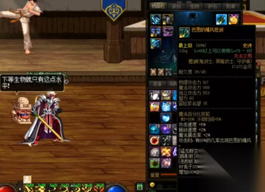 而飓风正是这把武器的本体,不过这个飓风的特效还是很帅气的。但相比而言,这名玩家更想要的是那把传说中的武器啊,而不是这把飓风短剑。本来这名玩家还想炫耀一番的,结果却成了个悲剧。
