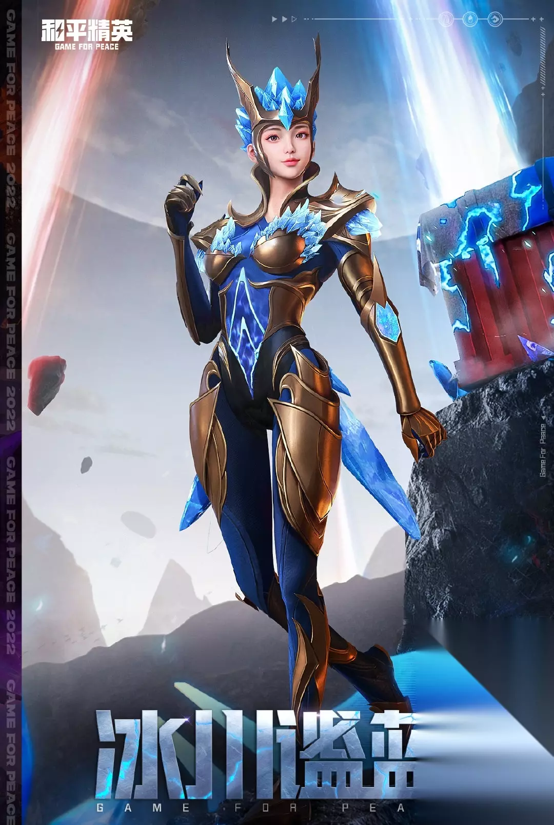 传说中在天外,某颗隐秘星球上蕴含着种神秘的矿物质,拥有它便能成为冒险世界中的最强战士。这个传说引得人们趋之若鹜奔赴外星,寻找它的下落。有人说科学研究院获得了它,科学家们对其中的物质进行提取分析,制成了一件能够极大限度提升速度的战衣。这件战衣最终被交由一名极具潜力的战士使用,那就是【暗星紫秘】。 【暗星紫秘】就像道紫色的闪电穿梭于赛场之中,那快到极致的速度使得她在人们眼中留下的只是一道道虚影,从来没有人看清楚过她的真容,而见过那道紫色虚影的选手们都已早早淘汰出局。 习惯独来独往的她,凭借强悍的实力成为实至名归的队长,当然,她那实力同样强悍的队友,心里或许并不这么想。 三、套装「冰川谧蓝」 冰川奥义,静谧之蓝