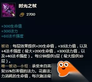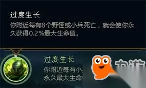 【时光之杖】在10分钟后会叠满被动,提供总共400法强! 所以符文+装备的效果,就是在后期帮助法师英雄——尤其是发育型法师,得到近500点法强!!! 8、【过度生长】+【紫雨林之拳】生命值成长最佳组合
