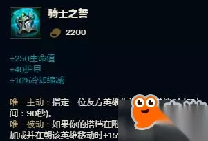 开局可以先使用【圣物之盾】帮助友军抢二,奠定下路的压迫阵势。在155s后【小兵去质器】生效,直接秒杀一波小兵,迅速推线的不二选择。 10、【行进速率】+【骑士之盟】——极大增强坦克辅助移速