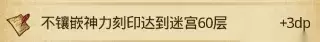 不思议迷宫神锻之地dp攻略 这个迷宫非常简单,大家也可以选自己喜欢的打,比如盘丝猴、放狗之类的,没有强力单杀技能的队伍可以用铠甲链接战士系,用铠甲技能收割打Boss。 选阵容的时候注意一点:场内链接是无法带入场道具的。 推荐阵容:王昭君出战 链接帝释天 + 大侦探 场内链接宇宙刑警 神器竖琴,圣者的凝视,称号 异界 + 毁灭 + 大地,优点是异界大盗神都有,打的快,资源也比较多。 这里先说一下拿15刻印的dp,这个dp目前来说不需要大盗神那个就能完成,猜测是无用和猎王算两个,但是不确定将来会不会改。