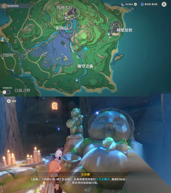 ▲ (三)深林狸囃子-镇守之森结界 1.寻找「奇怪声音」的源头,与「奇怪的雕像」对话