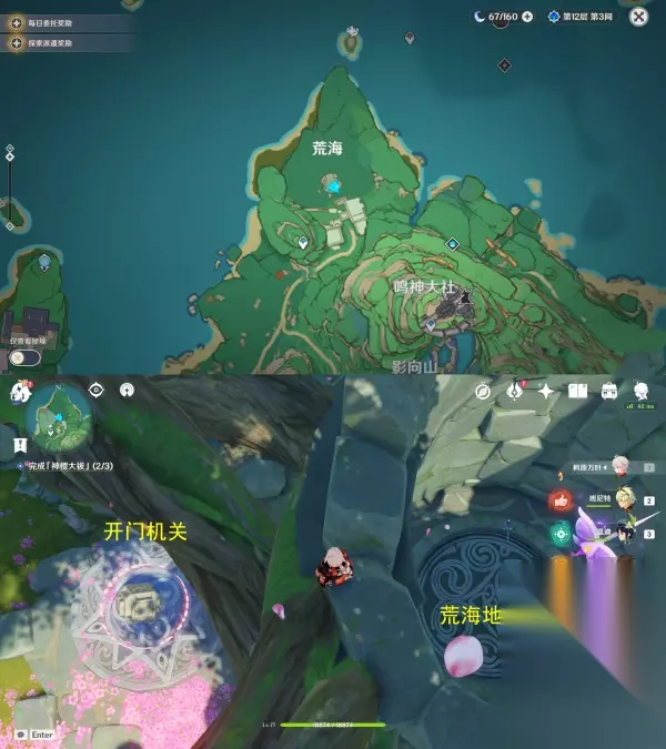 3.第三个结界位于「荒海地下」 右边是荒海地下入口,被锁上了,需要解开左边的机关