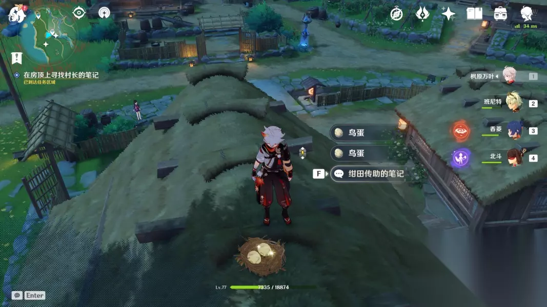 在村长房子的房顶上找到笔记