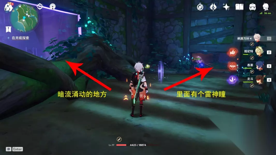 ▲ 3.在井底探索,进行祝祷 进入到井底后右手边有一个雷石堆,用火元素攻击石堆,接着一直往里走