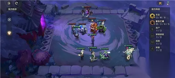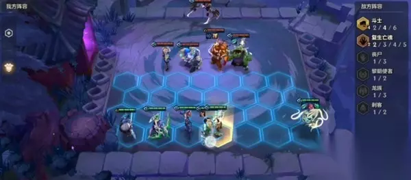3、打法攻略: (1)让格温站在前排,拉克丝往边上站; (2)第二关面对的是4斗士+复生亡魂的阵容,用维克兹站在角落清扫更多的敌人。 【阵容二】 站位如下图所示,按照下图站位,保证稳过。