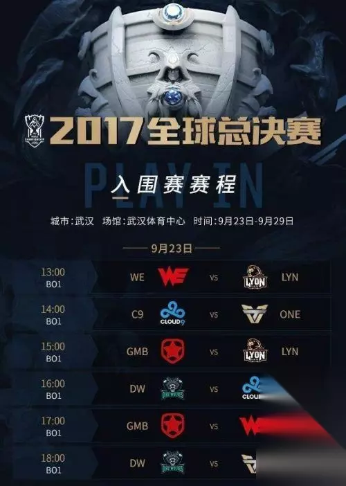 今天,《英雄联盟》官方正式公布了S7的入围赛赛程,9月23日WE将首战对阵LYN,一起来看下详细赛程 入围赛将从9月23日持续至9月29日,决出4名小组赛名额。在入围赛过后,将有4支战队晋级小组赛,继续他们的总决赛之旅。 入围赛赛程:
