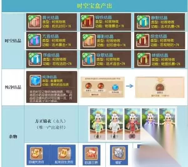 时空宝盒可以简单的理解成一个“置换站”。玩家可以以物易物。玩家投入的物品,会被系统计算为时空能量,根据时空能量的多少,系统会返回相应价值的物品。 他的产出主要为时空结晶、银币、纯净结晶和杂物。 我们分两部分说,投入和产出。 投入少,产出多,金币就来了。 相信很多玩家此时,会投来不屑的眼神,这玩法还能赚金? 先说投入! 放什么东西,是有讲究的。你放入的东西,系统是如何标定他的价值的,这是个非常有趣的话题。