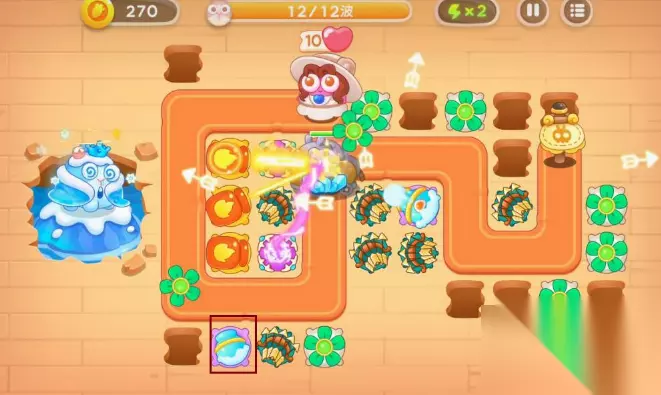 7、获得足够萝卜币后,可以在怪前面的路上种一个雪球,升满级 8、最后成功过关!!