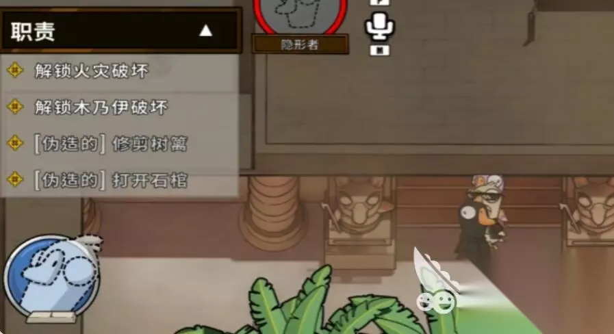 隐形鸭如果利用隐身技能的时候,一旦隐身攻击键就会亮起,靠近目标就能够出刀。击杀之后也不会显形,不过技能的冷却时间初始是17秒,当隐形鸭使用过一次之后就会直接延长到20秒。不得不说玩家利用隐身技能的时候也需要合理的规划使用的时间。如果玩家成为了隐形鸭的时候,倒是比较适合单打独斗,因为在人群当中隐身,他根本就锁定不了目标,要是跟其他的人搭配的话,还容易暴露自己,所以说单独游走,这时候再利用隐身加速,就能够悄悄的去接近目标,另外玩家也需要注意,成为隐形鸭的时候也可以偷袭抱团的玩家。