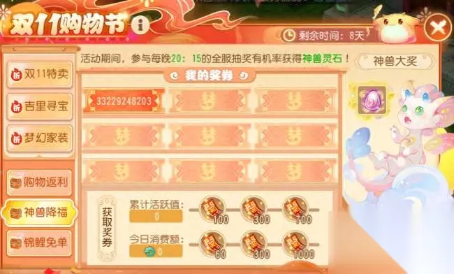 虽然这波更新都跟仙玉有关,但是也有一些真正的福利。 就拿这个奖券来说,只要累积活跃值就能领到,每位玩家可以免费领6个,反正是免费福利,万一抽中你了呢?并且如果要入手道具,也可以趁着双11返利省一波。