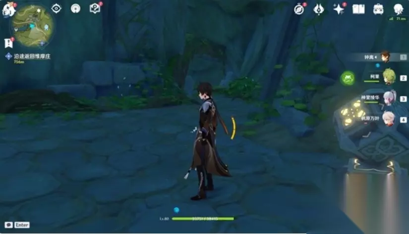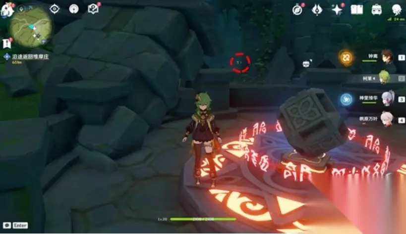 首先我们需要去获取草种子。从机关处向西方向跳下去,可以见到一个需要草元素才能解谜的机关。大家换出草元素主角对石头使用元素战技即可解开。