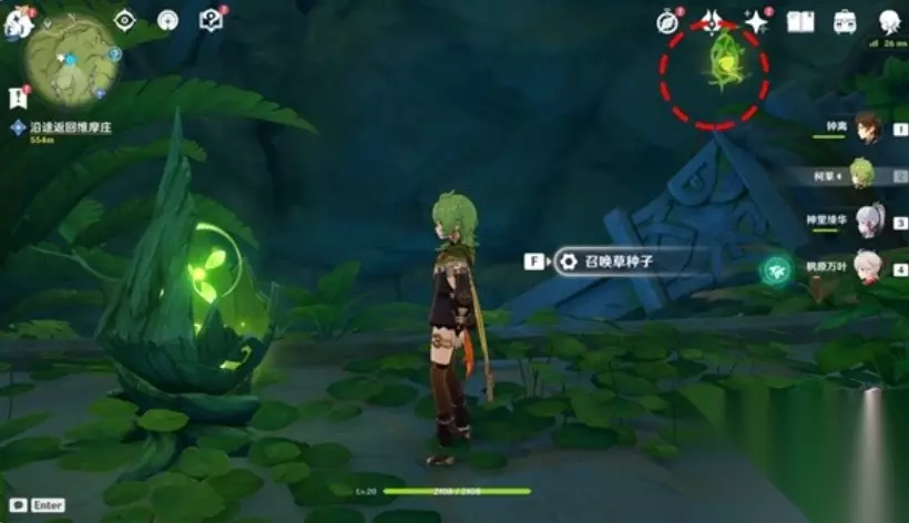 获取草种子并射击两次解谜机关即可完成秘境的开启。