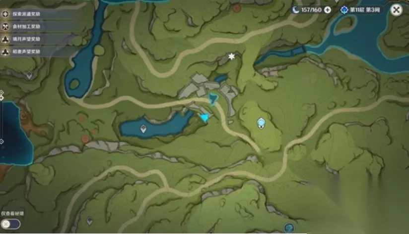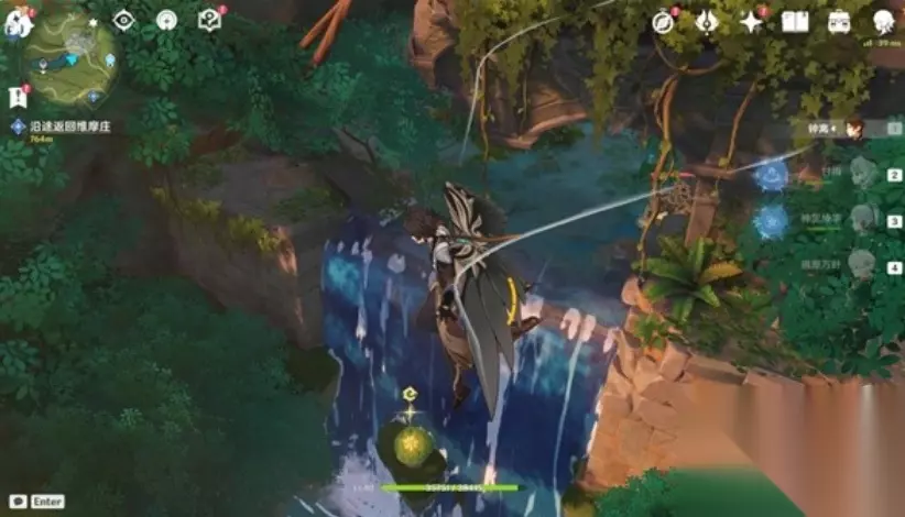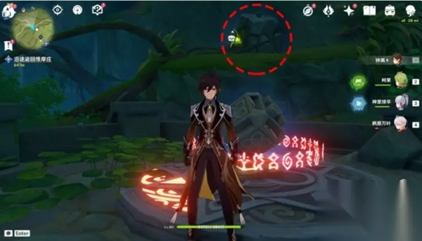 原神童梦的切片解密方法介绍 秘境解锁流程: ①前往秘境位置 到达秘境正北方向如图所示位置,向水池中跳并往回看,会发现一个遗迹。