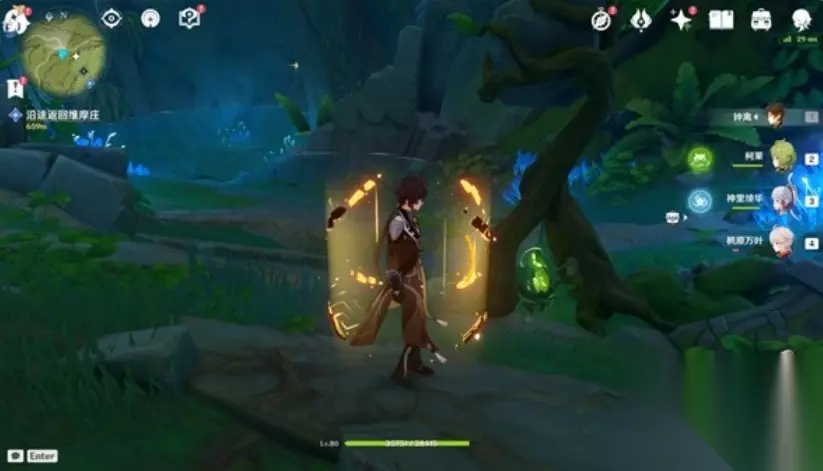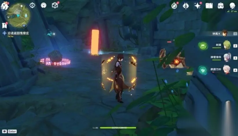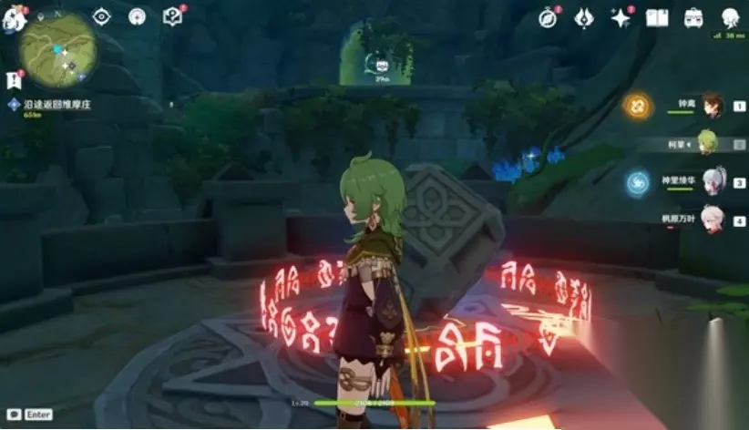 解锁完上述四个草元素方碑之后,即可开启机关,使水位下降。跳下去,击败一个遗迹龙兽和两个遗迹机兵即可解锁前往秘境的入口。