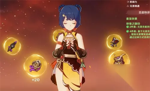 这套圣遗物搭配,既给香菱提供了20%的元素充能效率,保证了香菱的技能循环效率,还提供了15%的火元素伤害加成,提供了香菱的整体输出上线,是非常适合香菱使用的。 圣遗物搭配推荐:【绝缘四件套】