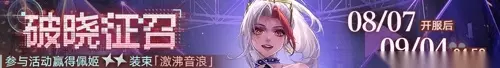 活动时间:08月07日开服后至09月04日04:59 活动说明:我们从废墟中起身,只为点燃第一簇火光。活动期间将逐日开放「破晓征召」活动关卡,共5关。完成所有活动关卡可获得【佩姬·激沸音浪】★★装束、异方晶等奖励。 「星辉舞台·Master」限时活动