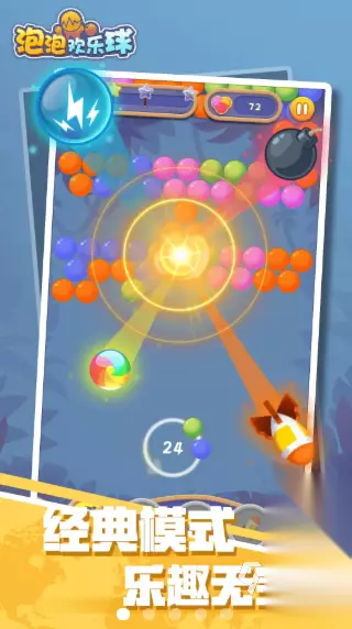 游戏界面简洁明快,色彩搭配让人喜欢,玩法则是传承了泡泡龙这一经典消除模式,简单易懂又充满乐趣。在这里大家将化身为泡泡大师,通过灵巧地调整射击方向,将五彩的泡泡精准地射向屏幕上的同类泡泡,只要它们三个或三个以上连在一起就能享受到消除的快感。每一次成功的消除,都是对智慧的肯定。游戏还藏着不少惊喜。游戏中会遇到各种神奇的特殊泡泡,它们拥有独特的消除效果。 》》》》》#泡泡射手#《《《《《 6、《泡泡欢乐球》