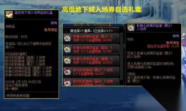 【三】6张高级地下城自选入场门票。从这个门票里,能选择机械战神勇士级入场券,还是非常香的。