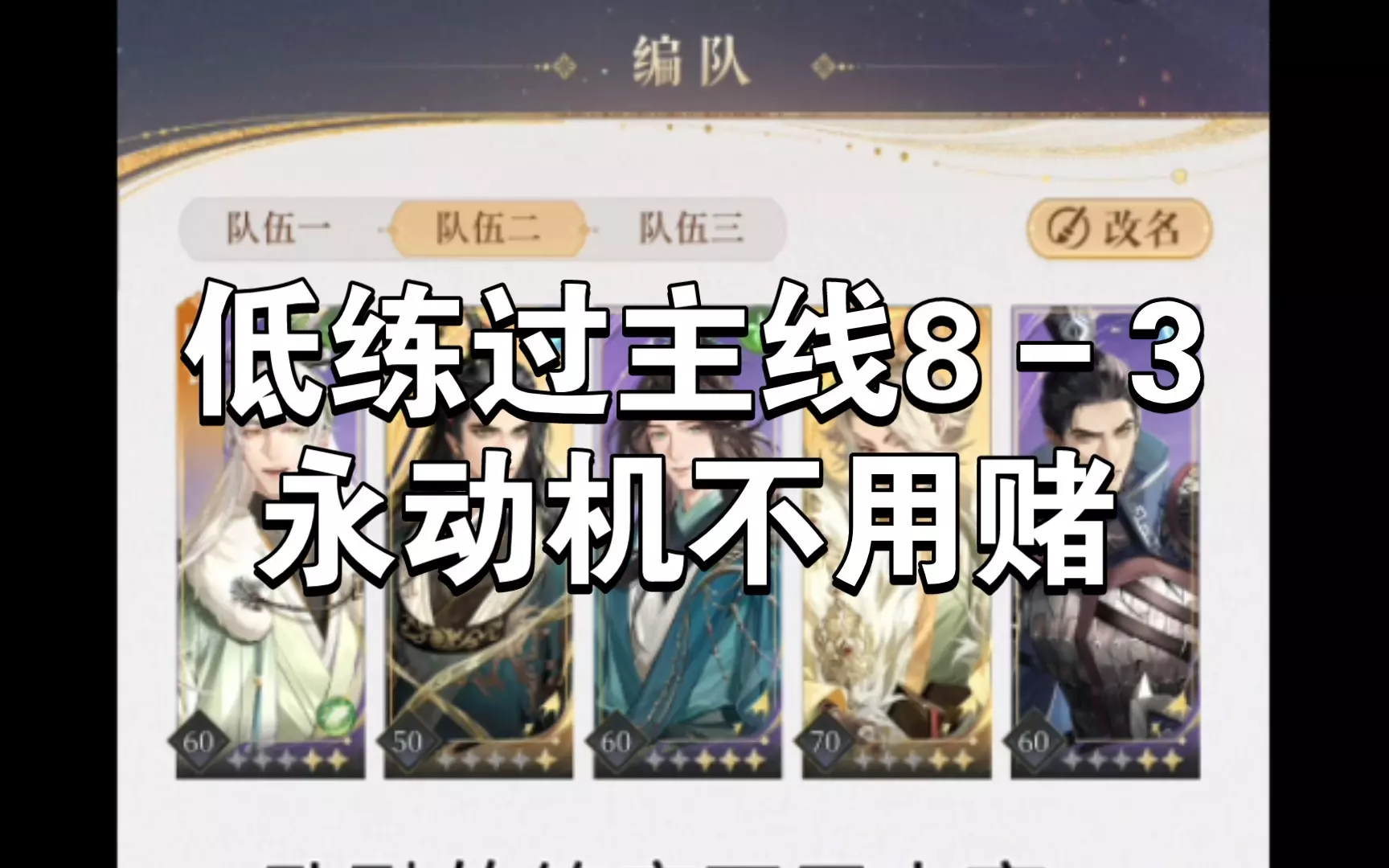 杨修的练度感觉还能再低一点,只要保证五个人都不死俩奶能在两回合补满血就行。