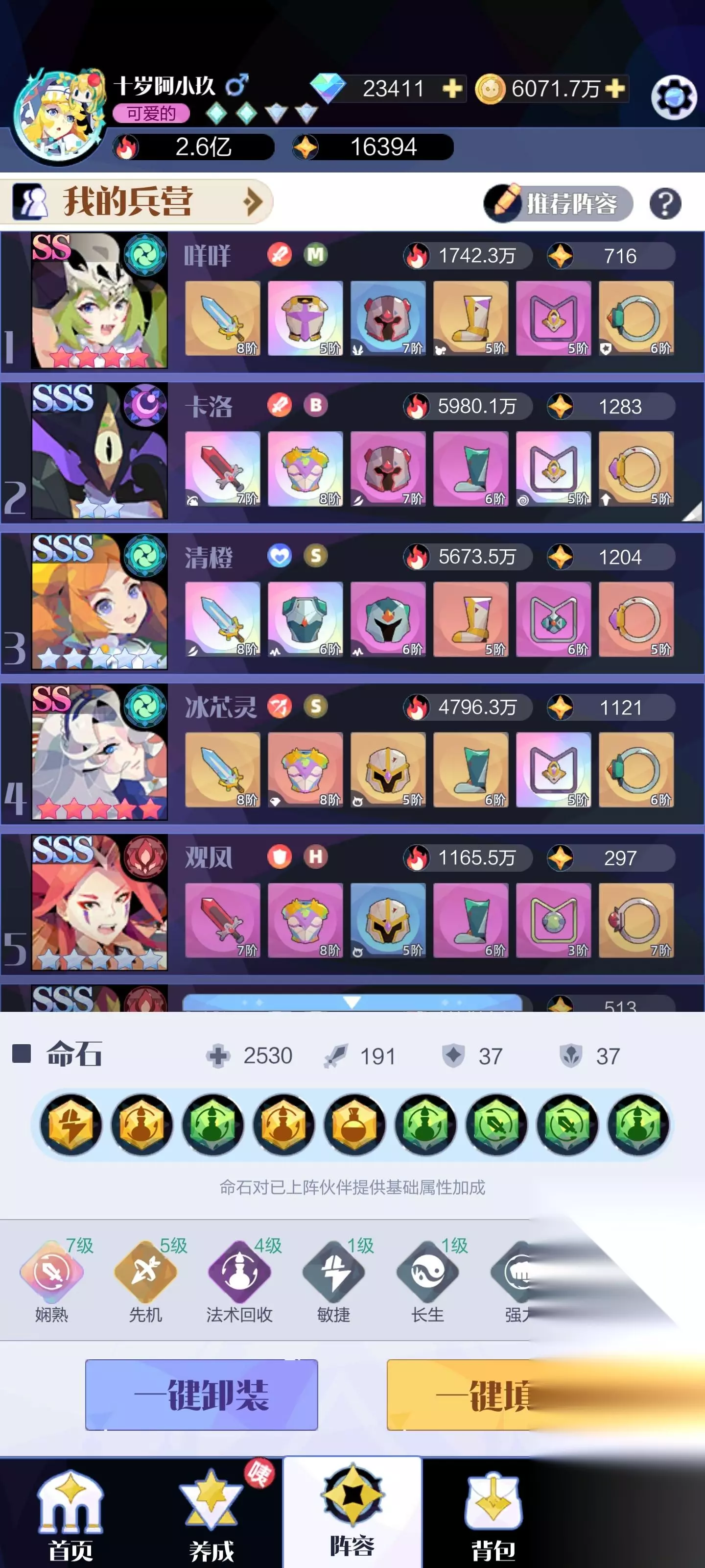大家好,我是莱恩。 今天我们继续邀请到了《召合2》高玩【十岁阿小昃】小玖同学给大家带来新手进阶攻略,冒险模式还没通关的小伙伴一定要看下去哦! 友情提示:本文字数较多,请耐心食用。 一.游戏前期思路 前期主要的任务是尽量提升我们的资源获取量,这是多方面的,其中包括: 【需要战力】 推图:提升挂机资源获取 副本:提升每张票获得的各项资源 天梯:提升结算获取的资源 【不需要战力】 公平竞技场:提升结算收益 创造小岛:提升结算收益 可以看到,前期我们不管做什么,最终目的都是推进挑战和副本,那势必就需要高战力,而高战力最最最直接的来源就是自有沙盘,辅以各种战力提升途径增加基础,所以我们提升战力的顺序是沙盘>其他。 但是打挑战我们都需要越战,光有战力是不够的,你的优势是对面怪没有任何加成,尤其是连携。 所以我们越战的根本就是连携,强力的连携技直接决定了你能越几倍战力,在前期你需要能打自己150%战力的关,过50关你需要打200%,55需要300%,60需要500%,65后需要600%。而这游戏伤害主要来源就是技能,且大部分技能不暴击,所以娴熟,先机,是绝对的核心,拥有这些命石就属于天胡。 命石没有怎么办?工具人来凑,前期我们优先需要凑满的就是娴熟。 【娴熟】角色: 摩云(10点),后羿(10点),观凤(7点),孙悟空(SS 3星 10点),兰博(SSS 3星 2点),莱特(SSS 3星 1点),彩练(SSS 1星 1点) 正常玩家能凑到的只有摩云、观凤、后羿,自选全选孙悟空,加起来37点,6级;一颗普通命石是5点,也就是说我们还需要3颗娴熟命石才能7级娴熟。 【先机】角色: 咩咩(10点),羽立(10点),冰芯灵(10点),加起来30点正好5级 由于关底能吃到连携,但是只有前三格的伙伴会参加战斗,所以请在boss战前把你的伊蒂、卡洛、后羿调到前三格 同时换上上述工具人凑连携。 【关底阵容】 关底的阵容某种意义上是固定的:后羿(可以替换为咩咩) 卡洛(或者其他大腿) 伊蒂(前三格), 摩云 孙悟空 观凤 羽立 冰芯灵(凑羁绊)。 此时,你的阵容自带6级娴熟5级先机,如果有命石就更好,基本不会出现关底卡关的情况,只需要注意道中即可。 注意:在关底尽量把你的形态给你的大哥,伊蒂是工具人,形态值有多少甚至有没有都不碍事;后羿主要作用为破盾,可以替换为咩咩帮卡洛分摊火力。 【道中阵容】 娴熟的四人组拉上,先机的工具人替换成你的大哥和辅助,比如班加德,藏狸等,因为道中其实没有那么吃先机(当然有是最好的)。 尽早凑齐上述角色尽早享受越战的快乐,只要你能正常越战打挑战了,那副本什么的更不碍事,现将你的挑战打到极限,然后升战力,然后打挑战,无限循环。 二.30-70关阵容抉择 终于到了最爱的抄作业环节 1.给萌新的六人阵容:(形态由大到小) 卡洛 后羿 摩云 清橙 孙悟空 观凤 2.国家队九人阵容 2.1 关底阵容(第50大关,低战力可过但随机性强) 前三格:伊蒂/清橙+后羿/清橙/咩咩+卡洛(神盾套) 通关时参考数据:伊蒂SS 5星,卡洛SSS 1星,后羿SS 5星 后六格:咩咩+摩云+孙悟空(SS 2星-3星)+观凤+冰芯灵+羽立 通关时参考数据:所有人第一连携为10即可,娴熟等级为7(三颗普通娴熟命石) 或 6娴熟6先机(一颗先机命石)。 灵活运用boss战生效连携且只有前三格加入战斗的特性,上娴熟先机工具人,配合卡洛无敌五秒钟,让伊蒂召唤出一堆小弟分摊火力,接下来就是关底越战的环节。