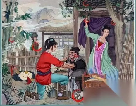 1、武大郎身上有3不和谐的,助听器、脚上的切尔西以及腰间的追踪器。 2、西门庆手上的手捧花,后面竹林的小广告,武松身后大刀上面还有个标价贴。 3、潘金莲手上的维生素、胸前衣服的拉扣,左边屋檐的信号增强器,右边树上的微型摄像头。